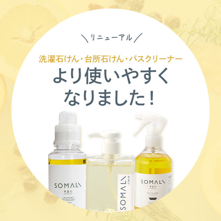 一部商品の界面活性剤を純石けん分から複合石けんに変更し、石けんの弱点を解消。使い勝手がよくなりました。